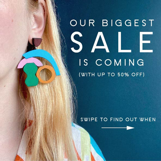 Discover our range of playful contemporary jewellery, all made from lightweight plywood which we carefully sand, paint, varnish and assemble in our sunny home studio.